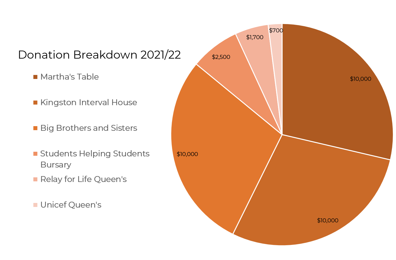 As Queen’s University’s only non-profit student-run merchandise retailer, OTD donates 100% of our profits every year to a range of local and international charities. This year, OTD is beyond excited to announce that nearly $35,000 has been donated to the charities below. This record-high donation would not have been possible without our customers, our executive team, and the Queen’s community.